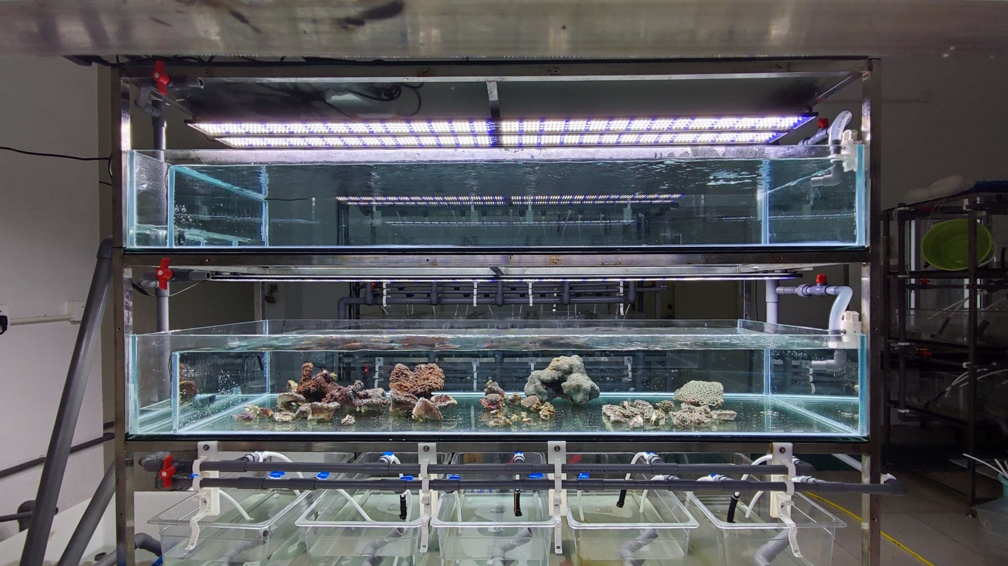 D-SMART made modification and upgrades were conducted based on the original culture system at D-SMART. With seawater supply system up and running, we are now able to culture coral fragments and other marine life for research and conservation purposes.