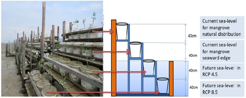 Based on M-ECORS, tidal flooding experiments of mangrove and salt marsh plants were carried out relying on the sea level rise in-suit simulation experimental platform in Zhangjiang Estuary. Different flooding gradients were covered in this experiment to study the effects of sea level rise and salinity variation on vegetation distribution in the coastal intertidal zone, and to quantify the growth law of mangrove and salt marsh plants in response to the changes of tidal level and salinity in the intertidal zone. By seting these experimental platforms in the upper reaches with low salinity content, middle reaches and lower reaches with high salinity content along the Zhangjiang River basin, to study the responses of mangrove and salt marshes plants to both salinity and tidal level.