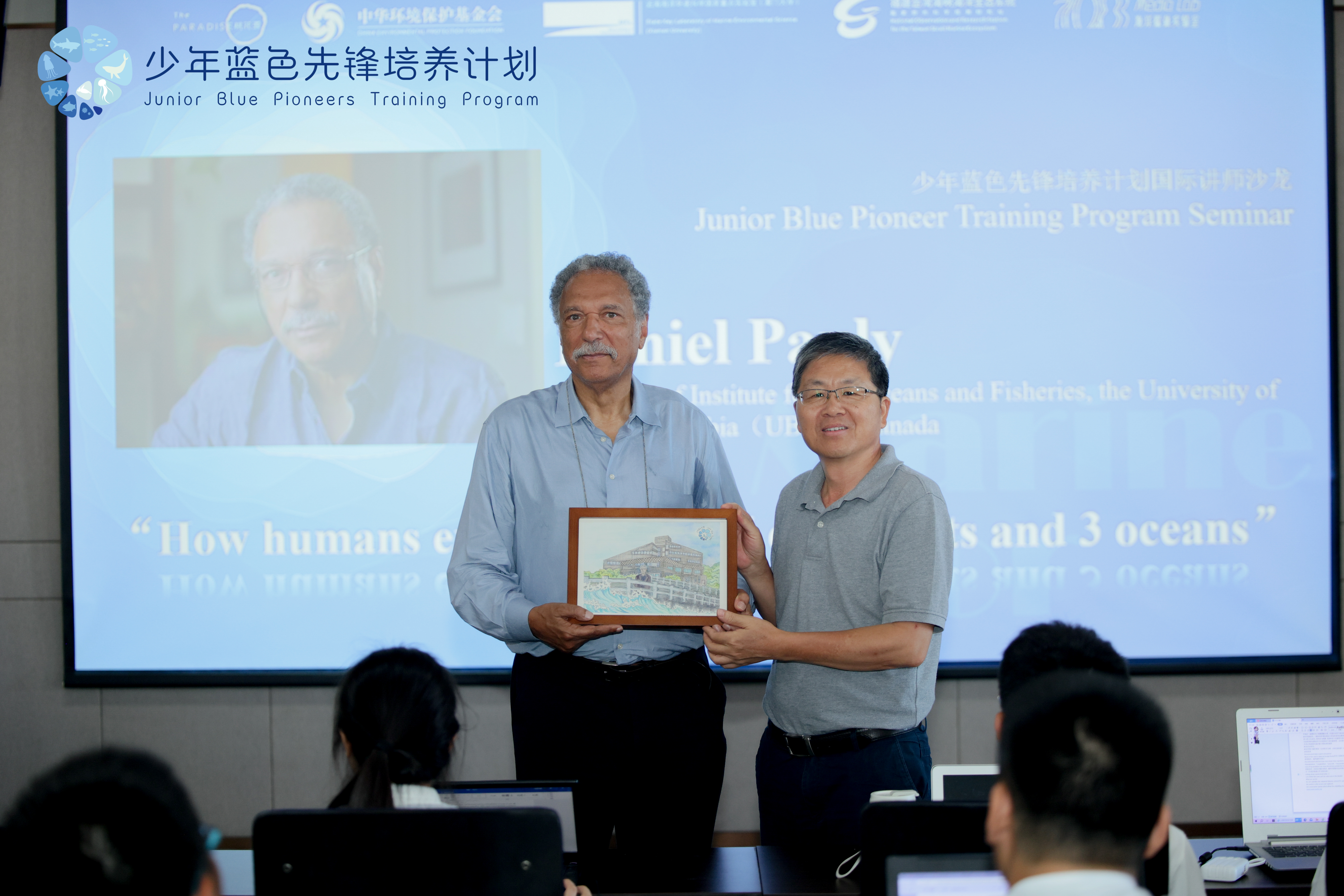 "Junior Blue Pioneers Training Program" was successfully concluded at the D-SMART from July 18th to 28th, 2023. It is a key marine education project, jointly launched by theThe Paradise International Foundation and the China Environmental Protection Foundation, relied on the State Key Laboratory of Marine Environmental Science (Xiamen University), 70.8 Media Lab, and T-SMART. 20 youngsters from all over the country gathered at the M-ECORS and D-SMART to complete their journey for marine talent cultivation. T-SMART invited Daniel Pauly, professor of the Institute of Ocean and Fisheries of the University of British Columbia (UBC), Canada, to gave an international lecturer topic for the students; Senior engineer Yamian Zhang, and resident scientist of D-SMART Chichi Liu were joined as scientific tutors; Assistant engineer Zeqi Zheng, Qisi Cai, engineer Sun Shengyao, and T-SMART secretary Jinhua Xue all participated in this activity.