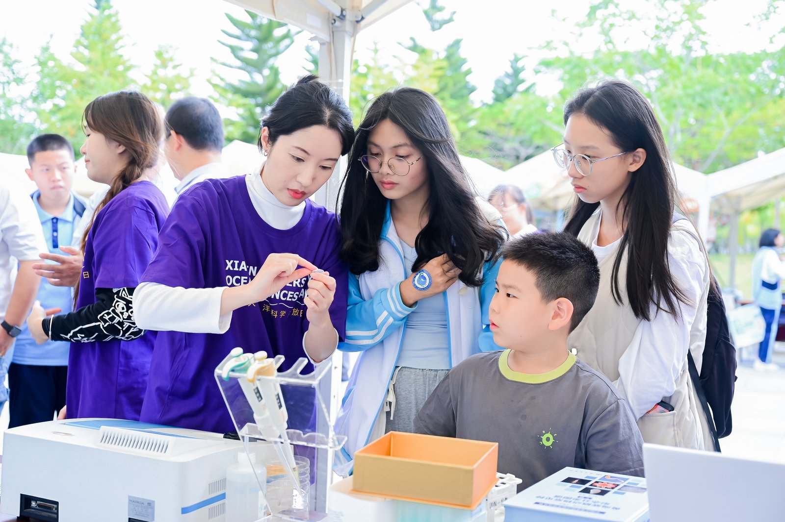 11月9日,在第十三届厦门大学海洋科学开放日中,台海站科普展位以其妙趣横生的科普内容与丰富多彩的互动活动吸引着中小学生、亲子家庭、海洋爱好者驻足探索近海生态系统的奥秘。