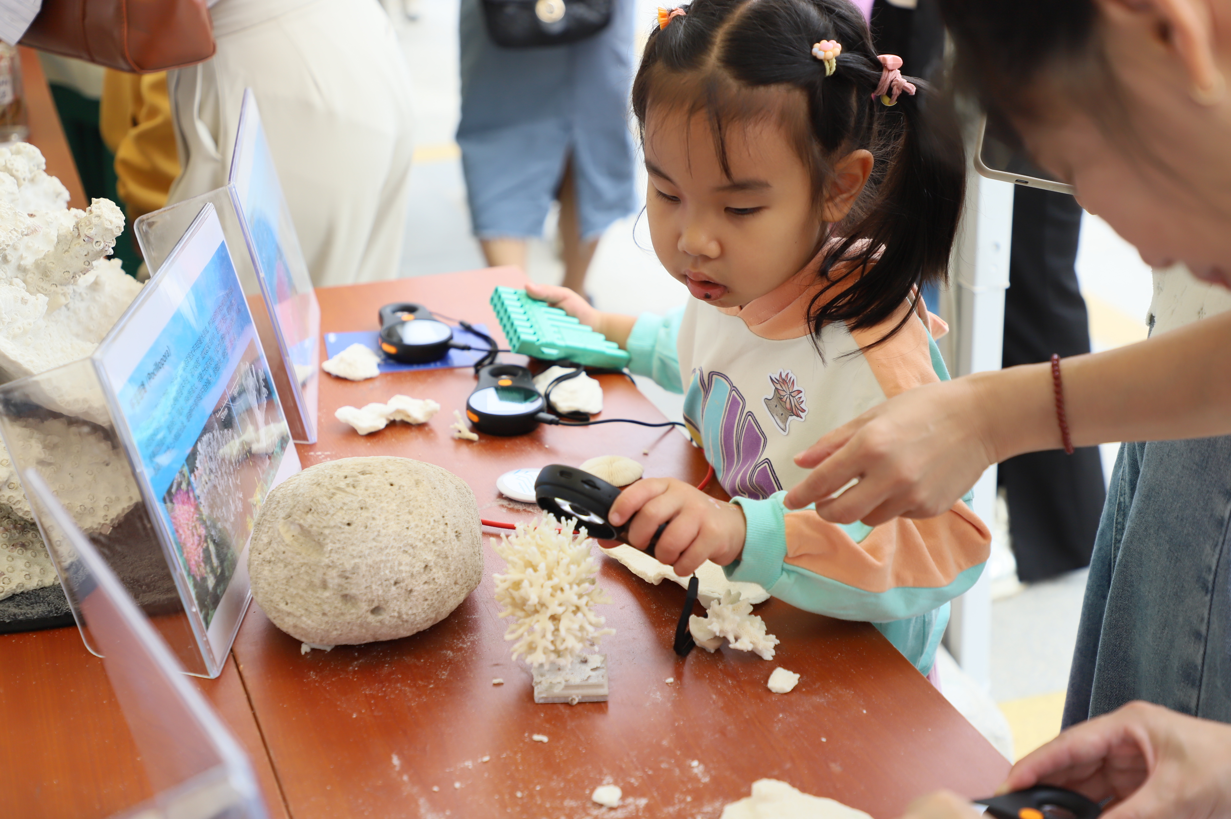 通过数码便携显微镜,参与者们可以清楚地看到珊瑚骨骼的细微结构,了解珊瑚礁类型及其发育过程,从而增进公众的海洋保护意识。