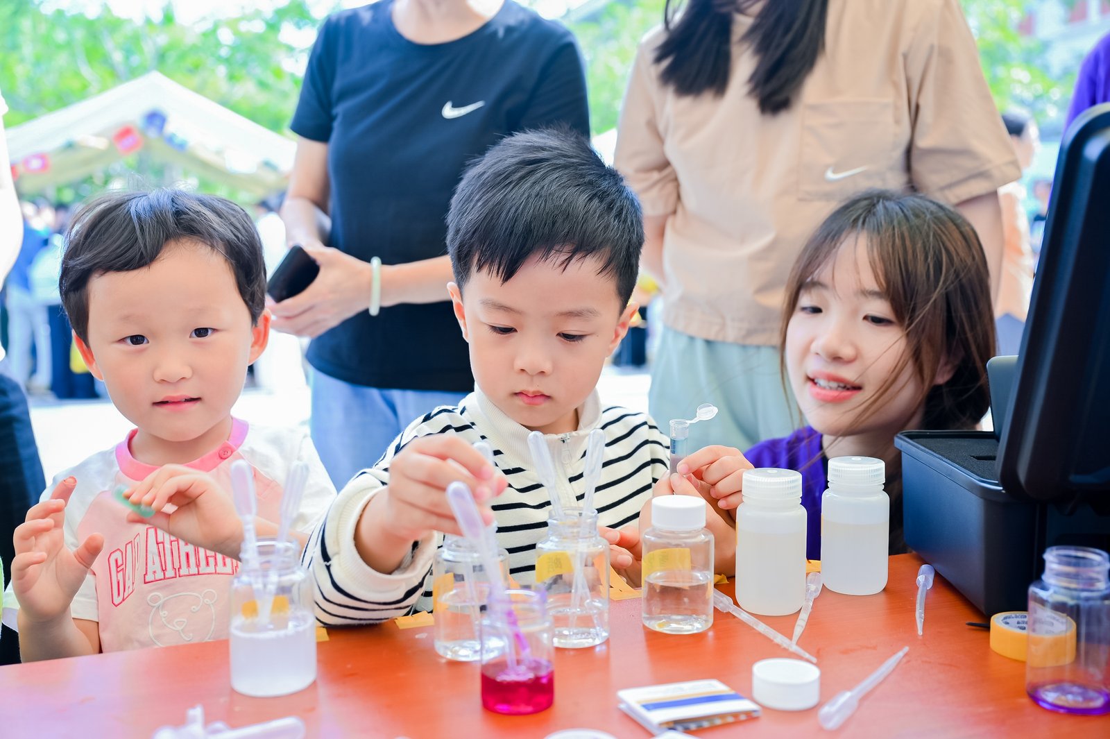 精彩的“酸碱魔法”科普之旅在台海站与马剑实验室合作设置的展区上演,实验室配制的未知 pH 溶液、生活中常见酸碱物质、南海采集的海水与酸化的海水,都蕴含着神秘的酸碱密码。从对世界充满好奇的幼儿,到求知欲旺盛的中学生,再到热爱学习的成人,都被深深吸引,共同探索奇妙的酸碱世界。