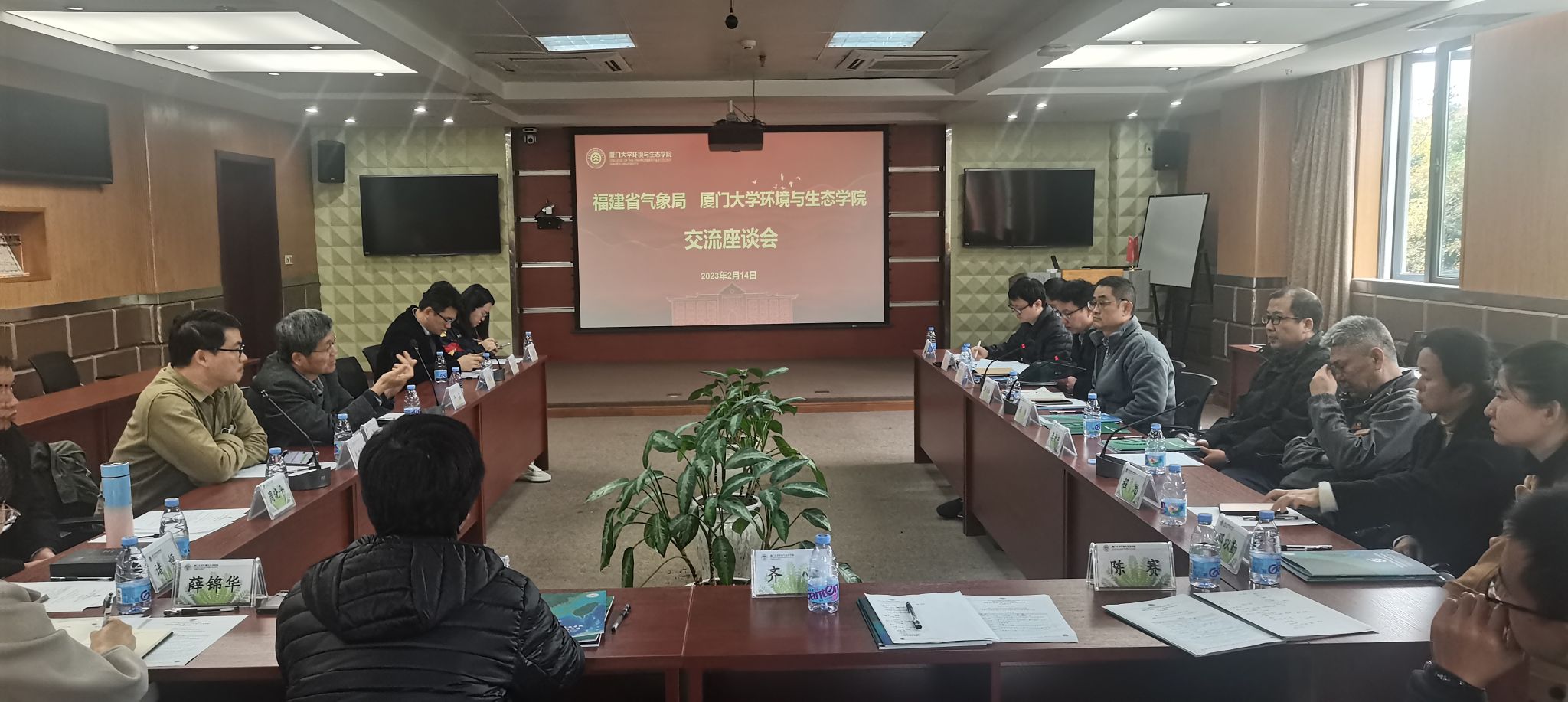 2月14日上午,福建省气象局科技处副处长洪荣林一行11人来访厦门大学环境与生态学院及福建台湾海峡海洋生态系统国家野外科学观测研究站(以下简称台海站),并在学院A239会议室举行了交流座谈会。学院副院长于鑫、台海站站长黄邦钦等共计10人参加了座谈会。