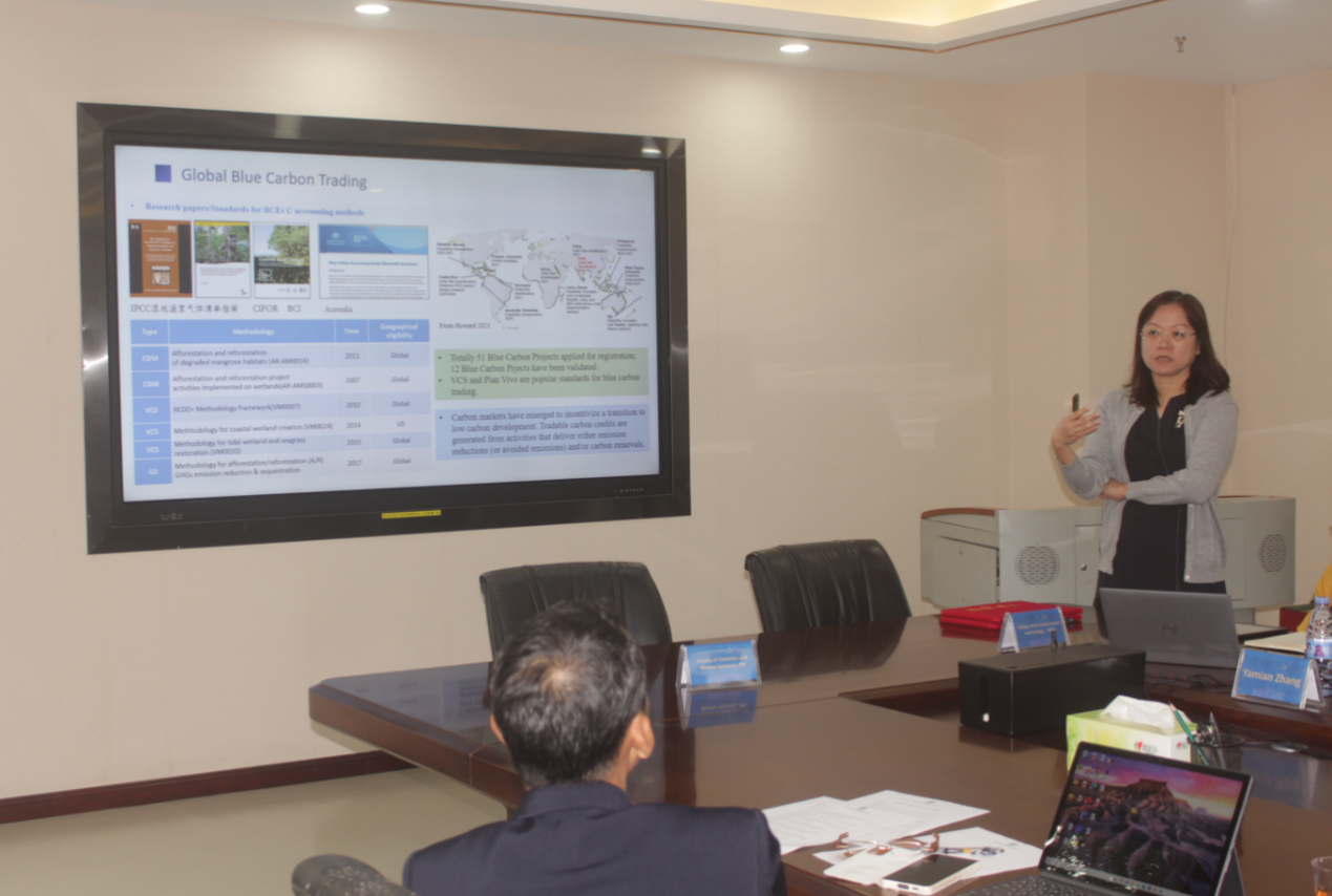 签约仪式后,陈鹭真教授和Yusli Wardiatno 教授对各自代表性研究做学术报告。陈鹭真介绍了中国蓝碳交易的实践和进展,蓝碳科研团队在蓝碳计量、蓝碳方法学、蓝碳交易方面取得的突出成绩。Yusli Wardiatno 介绍了水生生态系统保护和可持续渔业管理前沿实践。