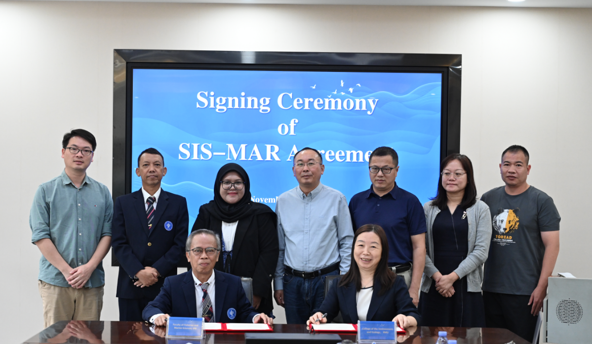 11月7日上午,印度尼西亚茂物农业大学(IPB University)渔业和海洋科学学院水生资源管理系系主任Hefni Effendi教授一行3人到访厦门大学环境与生态学院,双方就共建红树林野外观测站事宜举行了SIS-MAR签约仪式。