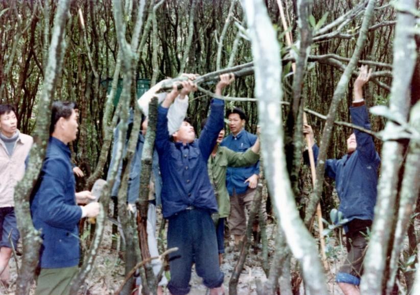 图1 林鹏(后排戴帽者)和连玉武(左二)带队在福建九龙江口红树林区进行“挖地三尺”的生物量研究(载于:袁东星,李炎,洪华生.《春潺入海—厦门大学环境科学的成长》.厦门大学出版社,2023版,第251页)