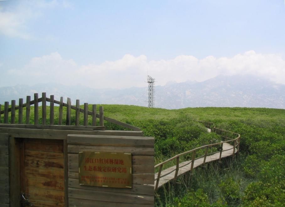 老海:2008年,厦门大学校长邀请经过“生物圈2号”试验和中国科学院植物研究所历炼的林光辉回母校任教。他一到校就全力推动装备了涡度通量观测塔的新一代红树林湿地定位观测站的建设。野外观测组织经验丰富的他,一方面与漳江口红树林国家级自然保护区管理局签订框架协议,合作建设红树林长期定位研究站,另一方面争取戴民汉主任的支持,将近海海洋环境科学国家重点实验室新采购的涡度通量观测设备,配上标准的观测塔架,就在保护区的样地边,开启了中国红树林湿地碳通量的高频率长期观测进程(图3)。