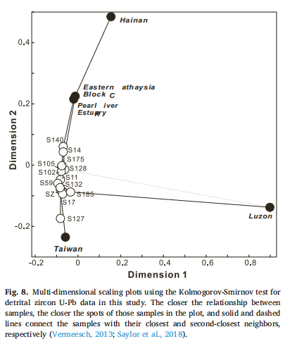 图3 Junmin Jia等《Provenance and dispersal patterns of sediments on the continental shelf of northern South China Sea: Evidence from detrital zircon geochronology》论文截图(载于:《Marine Geology》2023年第457卷第107013篇,第10页。)