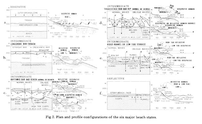Wright, L.D. and Short, A.D., 1984. Morphodynamic variability of surf zones and beaches: a synthesis. Marine Geology. 56(93-118)。