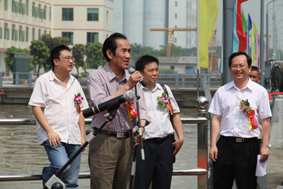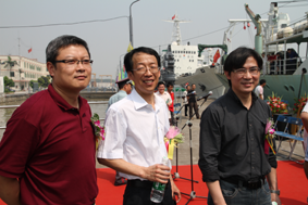 老海:最先启航的是具有几年开放航次经验的中国科学院南海海洋研究所“实验3号”科学考察船。5月25日上午,完成国家自然科学基金委员会“船时共享航次计划”2010年南海多学科综合航次考察任务的“实验3号”船顺利返回广州新洲码头。陈宜瑜主任带领的国家自然科学基金委员会一行8人,以及5个共享航次项目依托单位的代表前往码头迎接并举行结航仪式暨总结交流座谈会(图2、图3)。