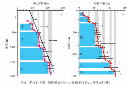 图4 靳建辉等《华南老红砂沉积年代学及其环境意义:以福建青峰老红砂为例》论文截图(《地理科学》2017年第37卷第2期,第301-310页):老红砂年龄-深度模式对比