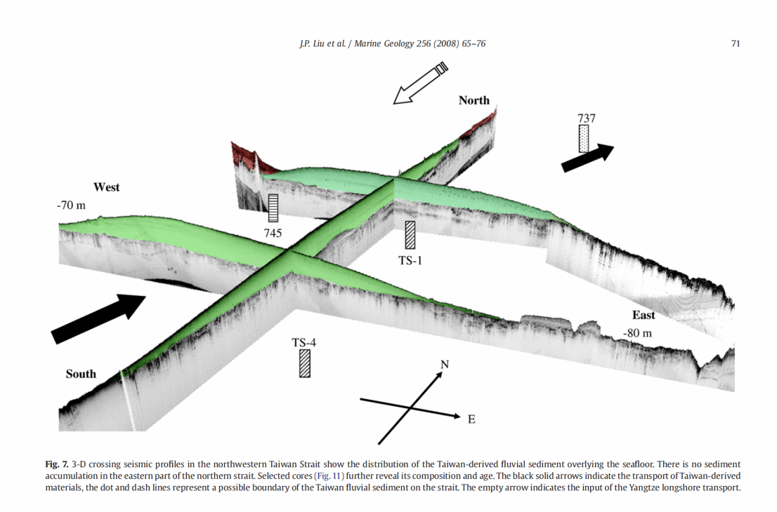 Liu, J., Liu, C., Xu, K., Milliman, J., Chiu, J., Kao, S. and Lin, S., 2008. Flux and fate of small mountainous rivers derived sediments into the Taiwan Strait. Marine Geology, 256(1-4): 65-76.