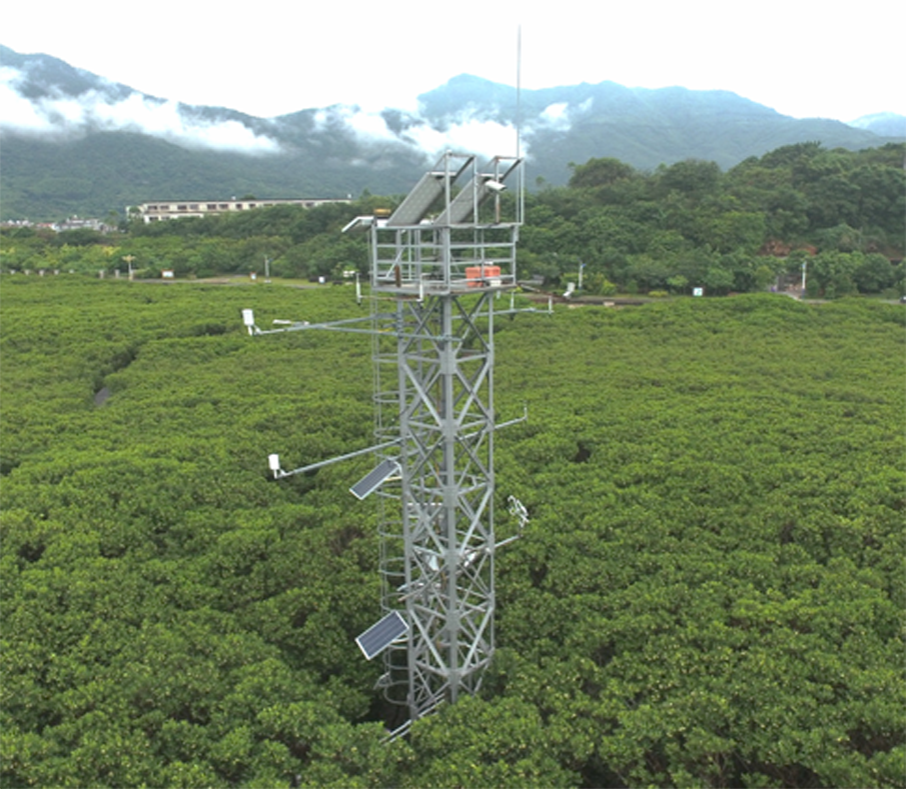 漳江口实验场建立有植物群落、鸟类、底栖动物、鱼类等的固定样地,配备有实时监测红树林生态系统碳水通量的涡度协方差观测系统、林内外微气象观测系统、湿地沉积物温室气体通量观测系统、湿地沉积物高程动态观测系统等监测体系。